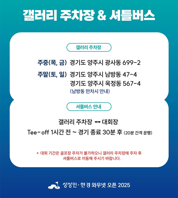 오늘은 상상인 한경 와우넷 오픈 2025 대회정보, 우승상금, 갤러리 티켓예매, 주차장에 대해서 알아보겠습니다.