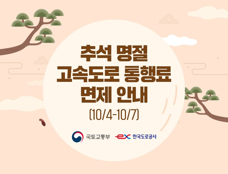 - 고속도로 통행료 면제 종료 : 10월 07일(화) 24시