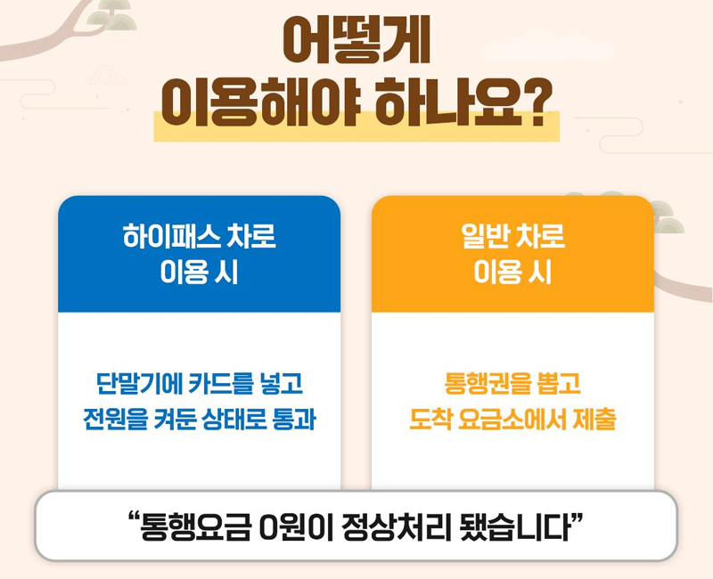 2025 추석 고속도로 통행료 면제 일반차로 이용 시